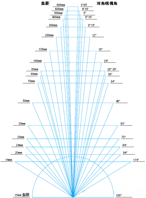 - 原理:在传感器尺寸固定的前提下,焦距与视场角成严格的反比关系。