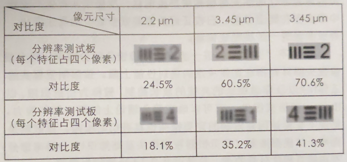 - 镜头侧能力:镜头分辨率通常用空间频率(lp/mm,线对/毫米) 表示。它表示在1mm的像面上能分辨多少对黑白相间的线条。